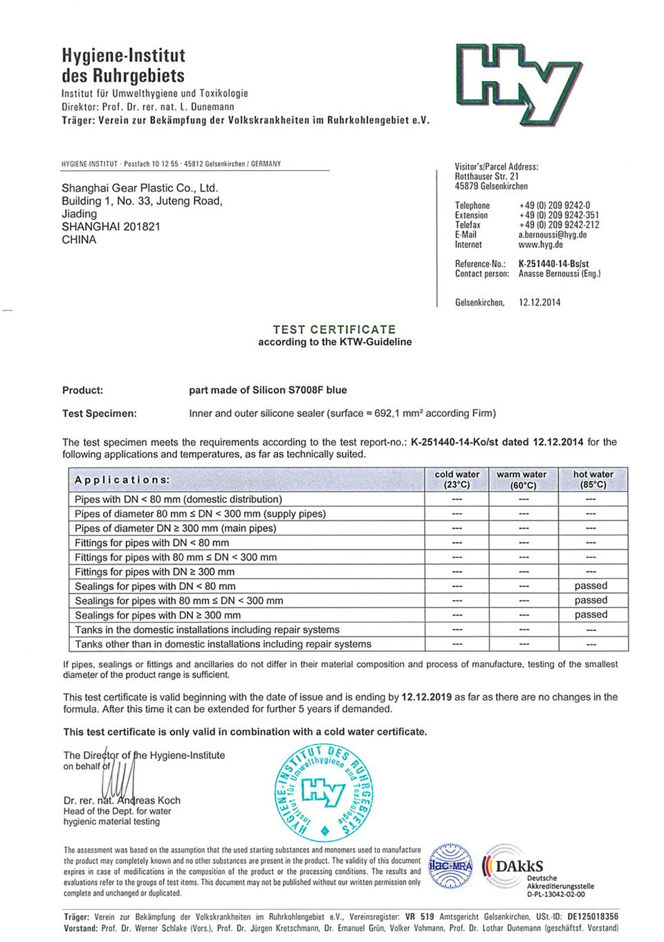 German DVGW certificate