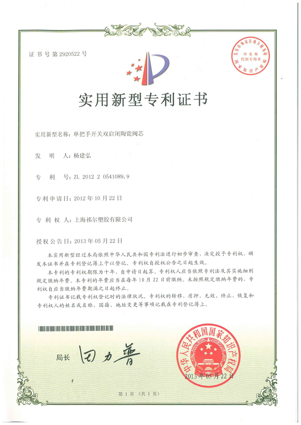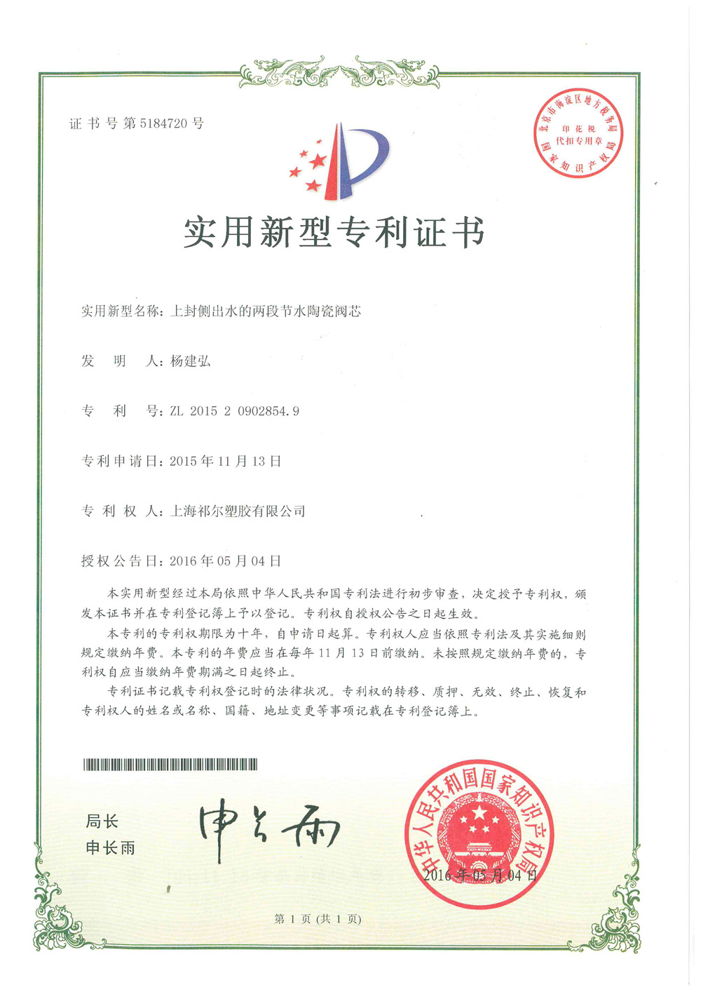 Ceramic valve core with water control function